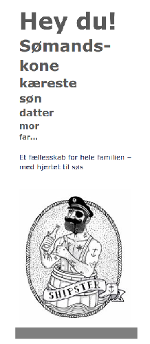Sømandskoneforeningen, er ikke som navnet måske kunne signalerer, kun en klub for sømandskoner på 60+ (dem er der masser af plads til og er meget velkommen), men vi er også en forening for den Danske Sømandsfamilie anno 2013. Vi passer godt på hinanden når vores mænd passer deres arbejde, om det er på de 7 verdenshave, offshore eller i Søværnet.